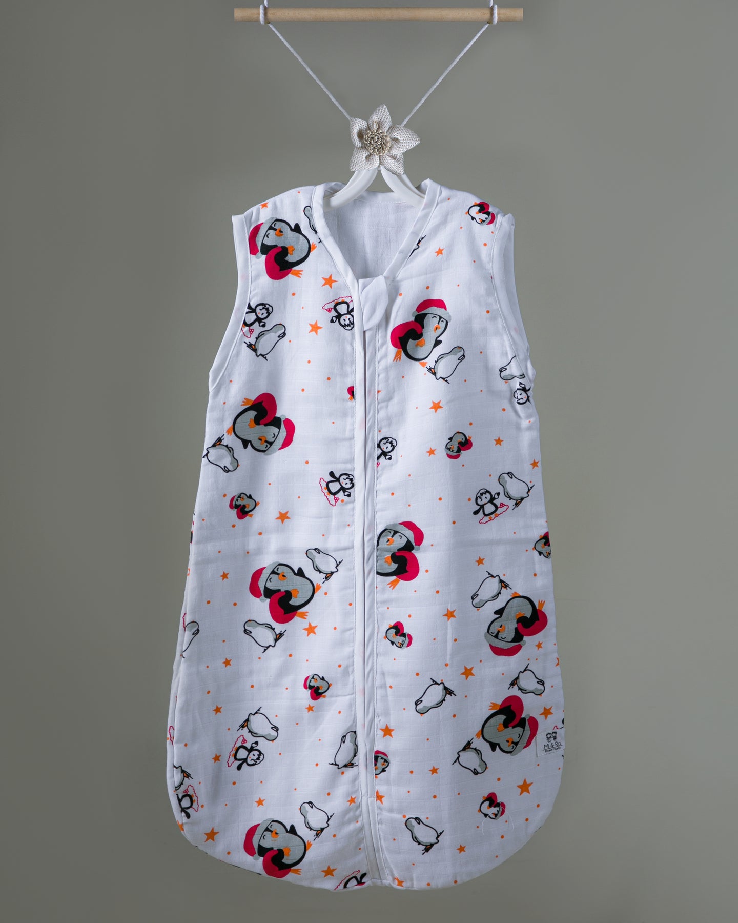 Mi and Ra Premium Muslin Front Zip Sleeping Bag - Penguin Print | 0 m - 15 m